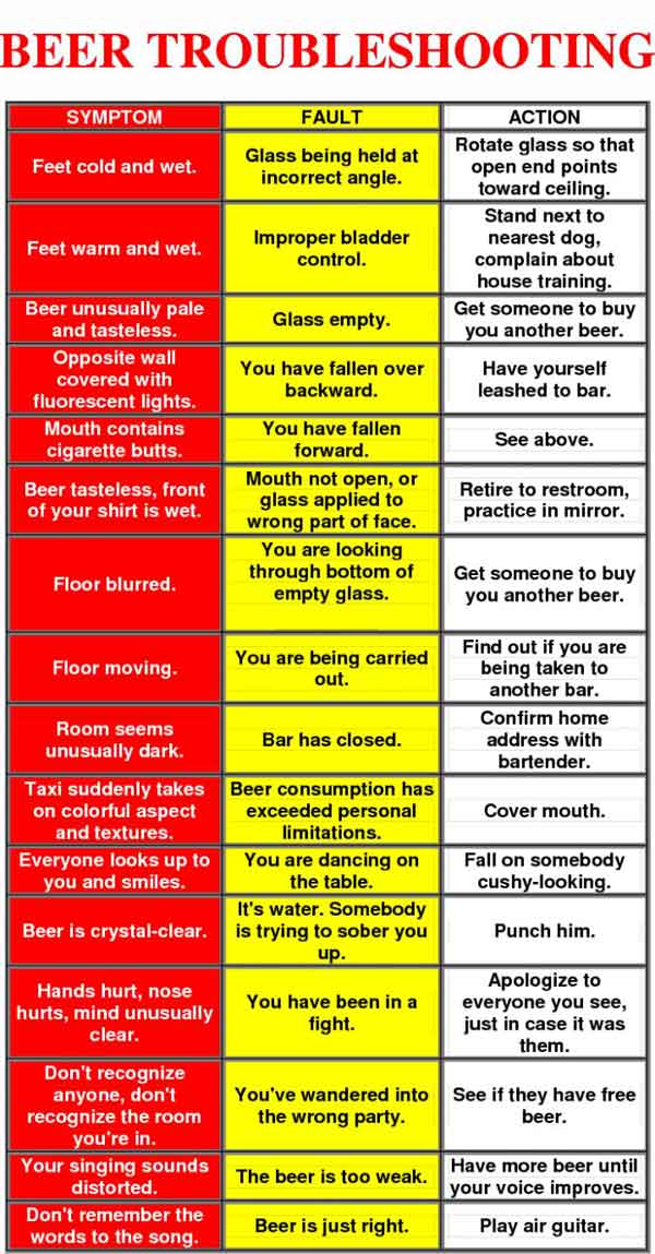 Just for Laugh Beer Troubleshooting January 10, 2025 571 Share on Facebook Tweet on Twitter This may help if you are going out for a drink later today. Always proofread to check what is wrong.